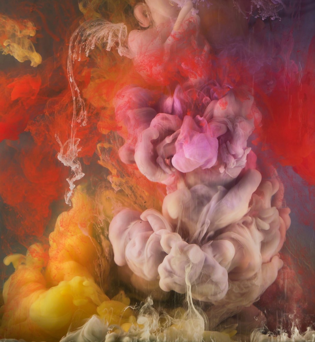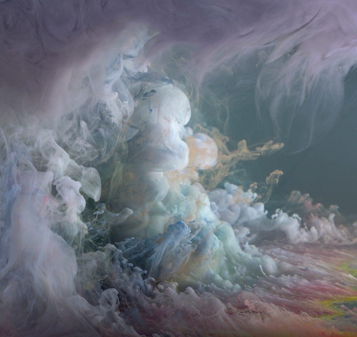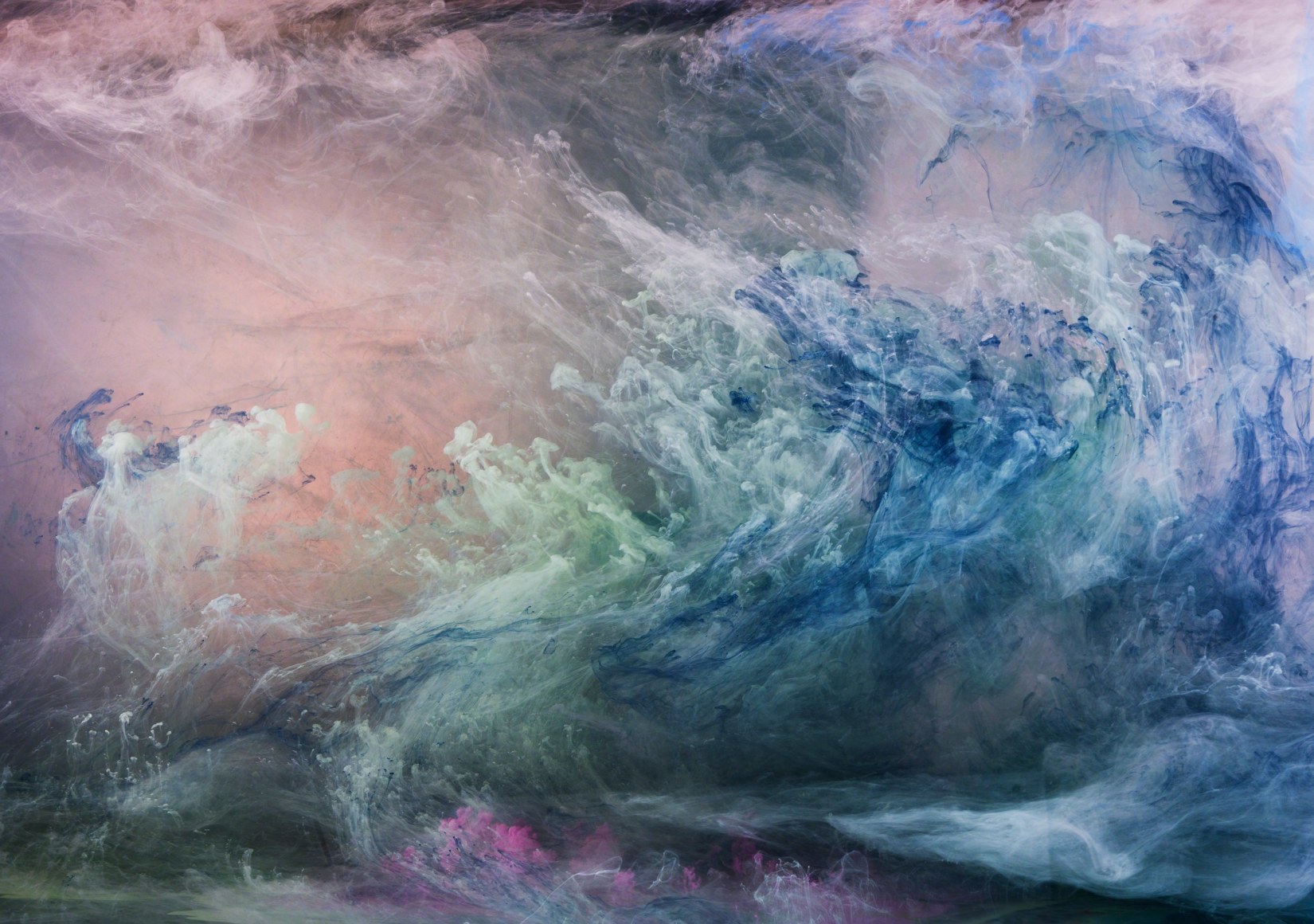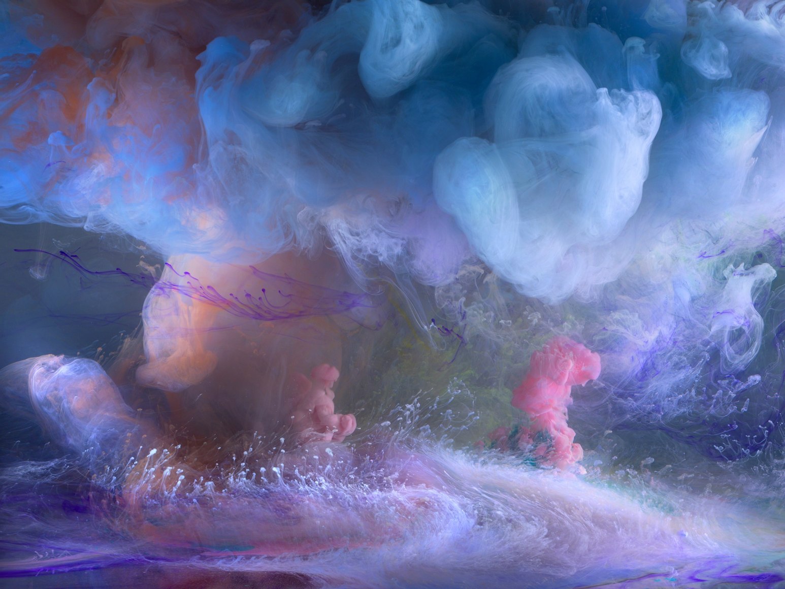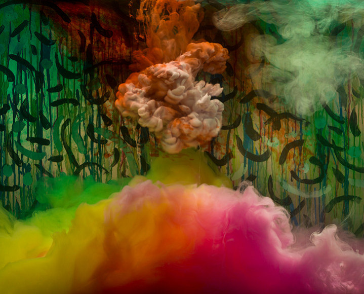 KIM KEEVER's spontaneous and expressive large-scale abstract photographs are created by pouring pigments into a 200 gallon tank of water, producing billowing blossoms and explosive clouds of color that he must quickly capture with his large-format camera.
