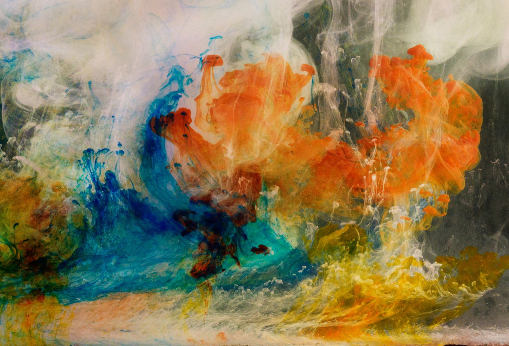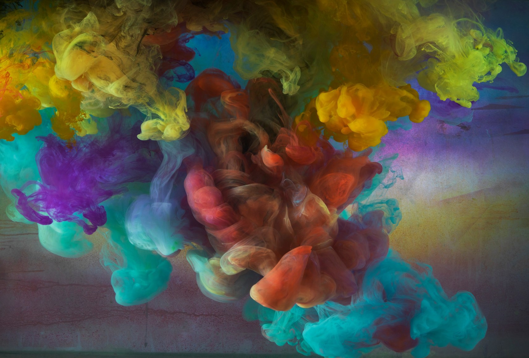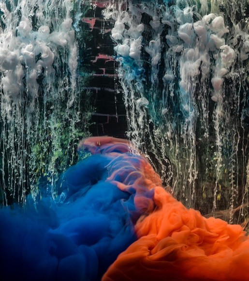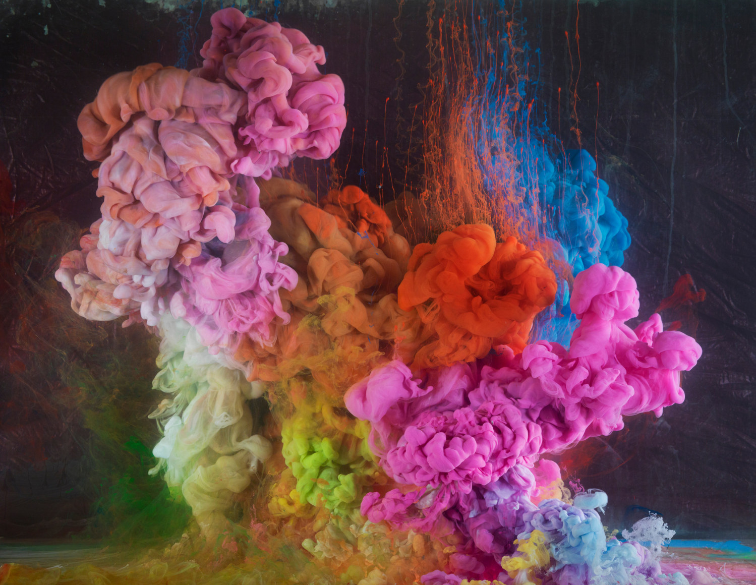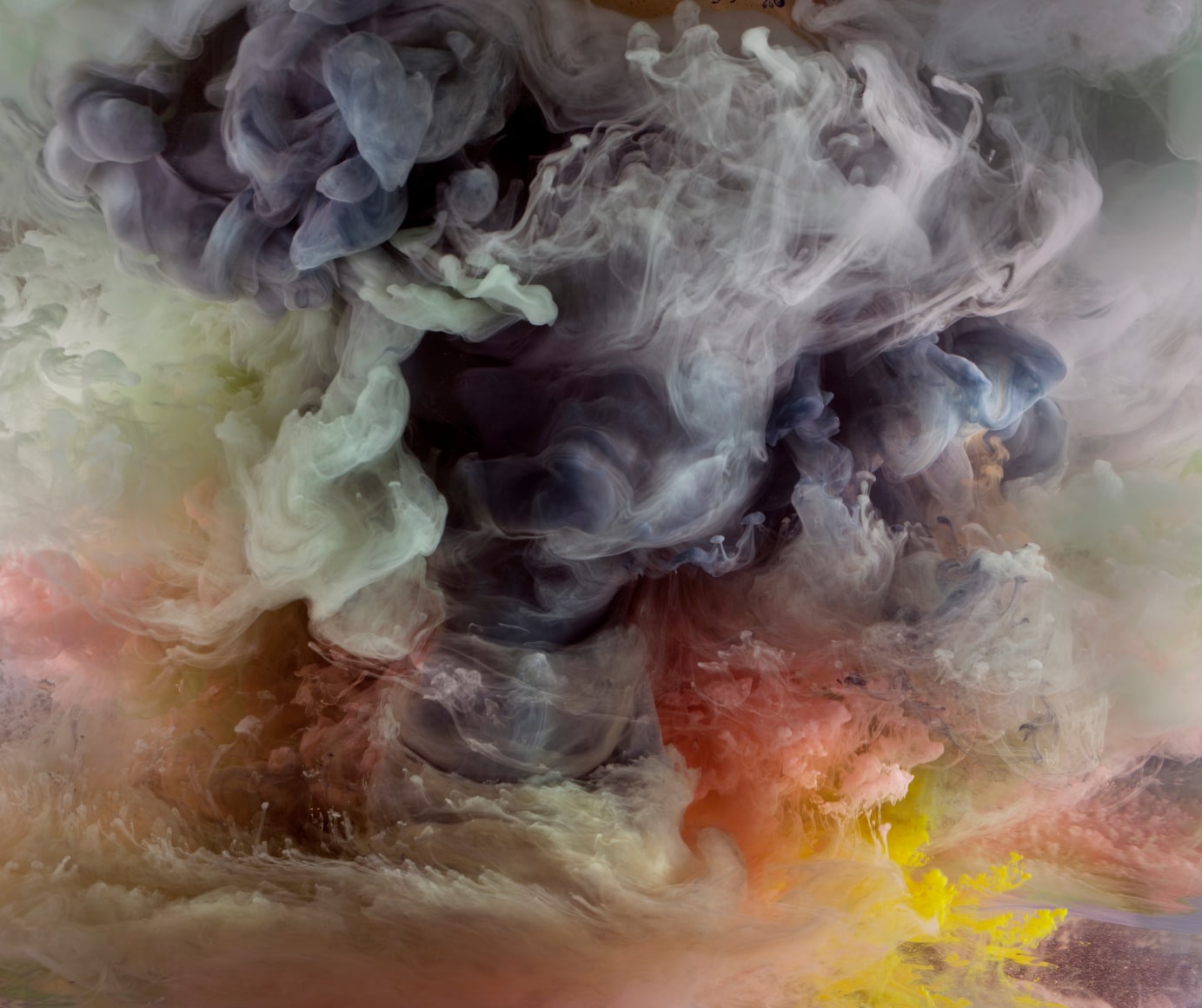 KIM KEEVER's spontaneous and expressive large-scale abstract photographs are created by pouring pigments into a 200 gallon tank of water, producing billowing blossoms and explosive clouds of color that he must quickly capture with his large-format camera.