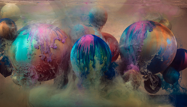 KIM KEEVER's spontaneous and expressive large-scale abstract photographs are created by pouring pigments into a 200 gallon tank of water, producing billowing blossoms and explosive clouds of color that he must quickly capture with his large-format camera.