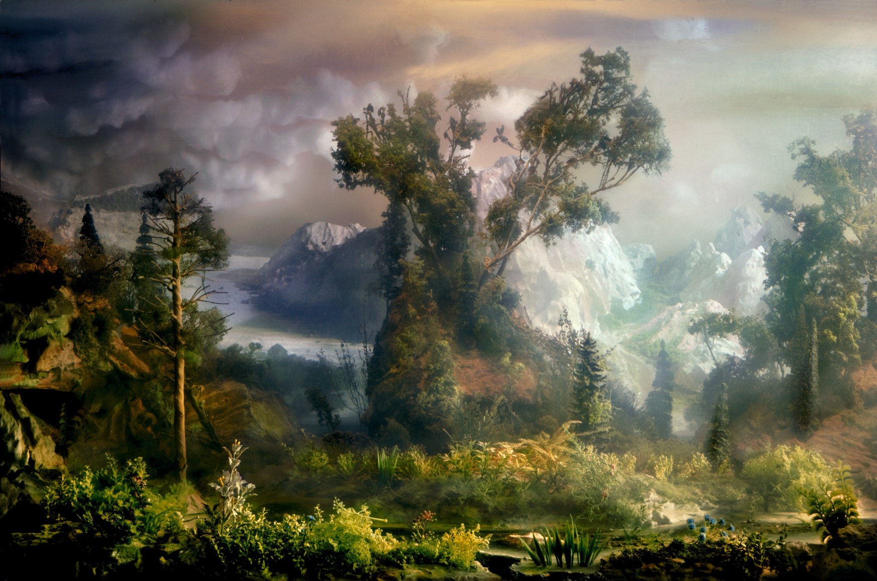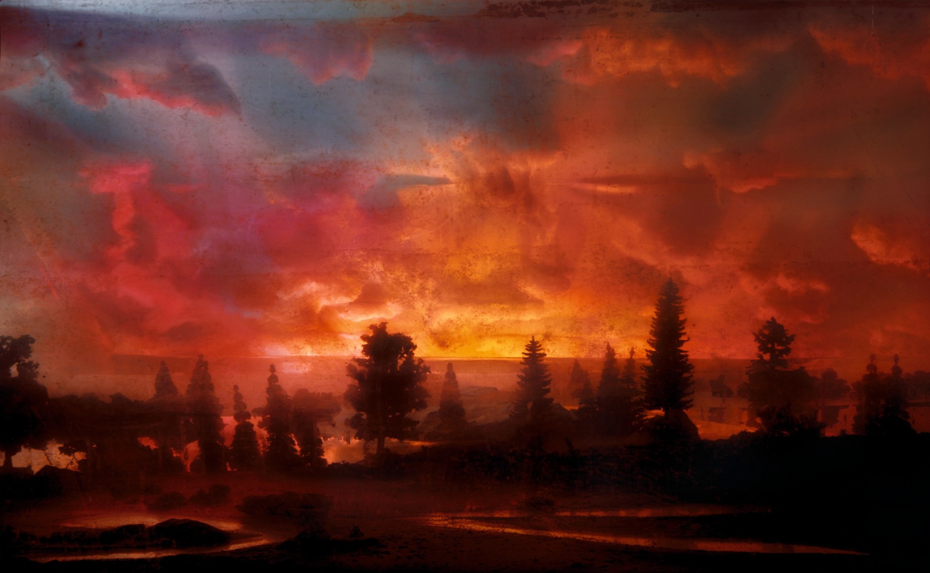 Keever's staged scenery is characterized by a psychology of time and timelessness. A combination of the real and the imaginary, they document places that somehow we know, but never were. The symbolic qualities he achieves result from his understanding of the dynamics of landscape, including the manipulation of its effects and the limits of spectacle based on our assumptions of what landscape means to us. However, rather than presenting a factual reality, Keever fabricates an illusion that conjures the realm of our imagination.