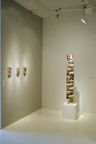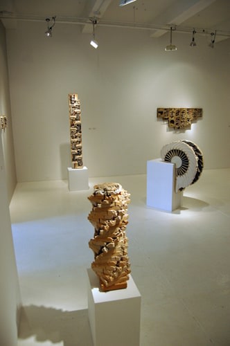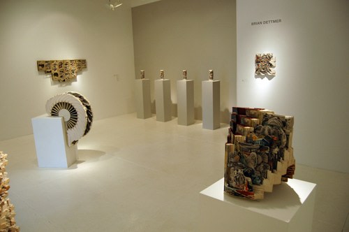 Brian Dettmer carefully selects and sifts through stacks of old books to uncover the perfect source and subject for his cultural archaeological explorations and sculptural possibilities. He first determines the presentation, engineering and construction of his altered book or books. Then, with the precision of a surgeon, using scalpels and hundreds of x-acto blades, he alters the pre-existing information and images by selectively removing and manipulating elements to propose new ideas and map new visual journeys.
