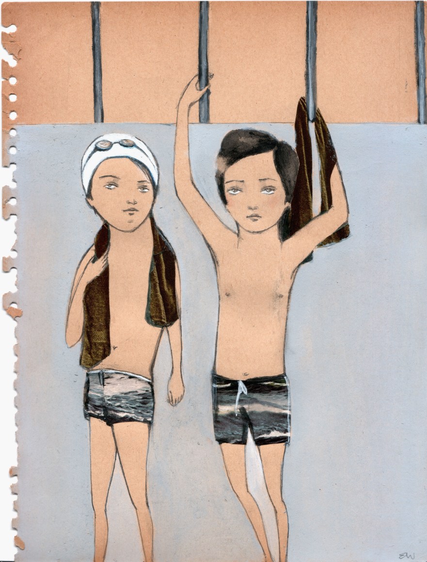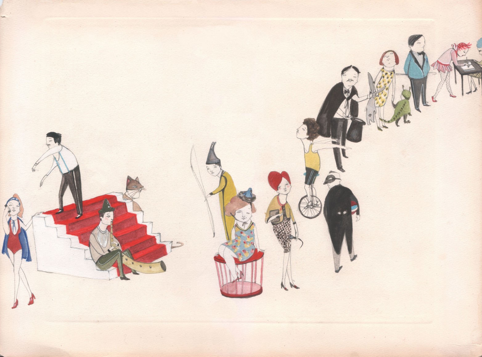 EDWINA WHITE has varied experience in the disciplines of theater, writing and illustration to the effect of creating playful and poignant vignettes inhabited by characters often posed in fable-like narratives.