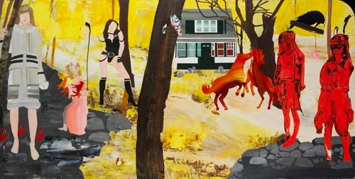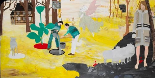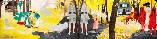 Elizabeth Huey The Cyclothymic Forest (detail: left panel), 2005 acrylic and oil on wood panel 48 x 192 inches