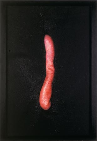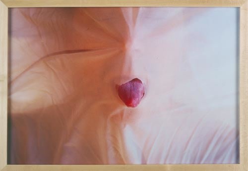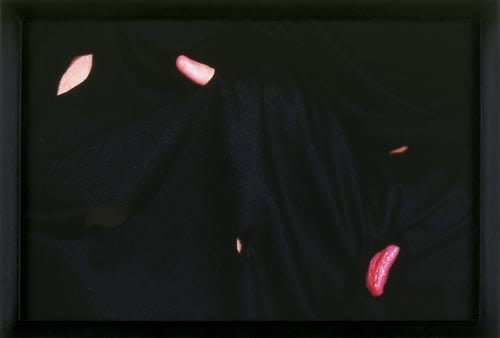 For her exhibition in the main gallery, Jeanne Dunning has completed a group of photographs that expand on her previous investigations into the human body and its metaphoric potential. The Scattered Parts series presents bits of anatomy poking through small holes in swaths of cloth. Tongues, lips, fingers and toes are objectified and isolated in fields of black drapery, bringing to mind traditional still-life arrangements. These dramatic constellations of bodily fragments are theatrically menacing and refuse to coalesce back into a comprehensible body. It is as if in spite of this apparent disembodiment, the subject's parts remain pink, pulsing and alive.