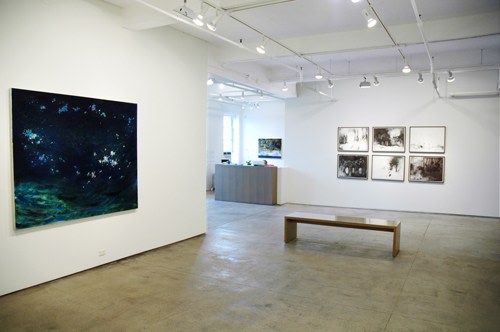 A series of dense black and white ink drawings delineate haunting woodlands and rocky passages that we want to cautiously and carefully explore. Coates' magical works echo the immenseness and mystery of the stars at night, the smallest natural wonders around us, and her own inner cosmologies. With a sense of awe, and somehow connected to the crevices of our minds, we wish to follow the alluring pathways of her imagination.
