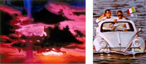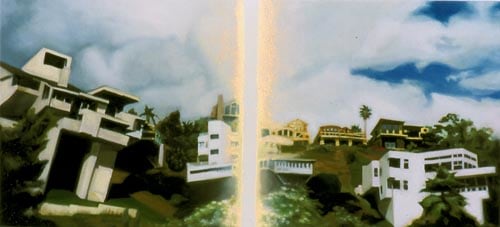 In the Front Gallery will be an installation of a large digitally rendered c-print across from a series of small oil paintings, nostalgically titled "Autumn Almanac" after the 1967 Kinks song written by Ray Davies as he strolled through his London neighborhood. Punctuated by both figurative and non-objective imagery of personal references to popular culture, the horizontal sequence of intimate yet vibrant paintings implies an abstract narrative structure similar to the accompanying DVD projected in the adjacent gallery.