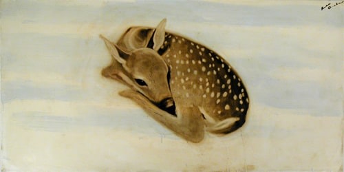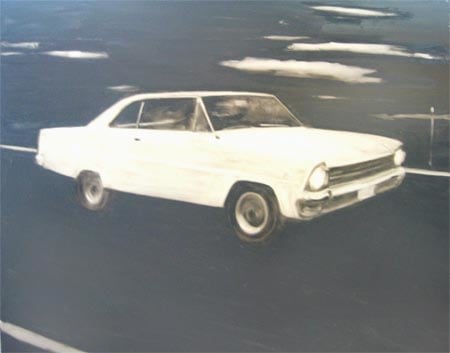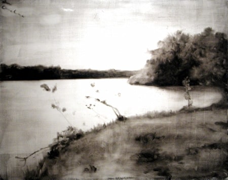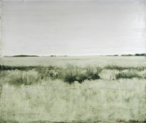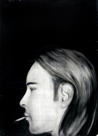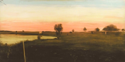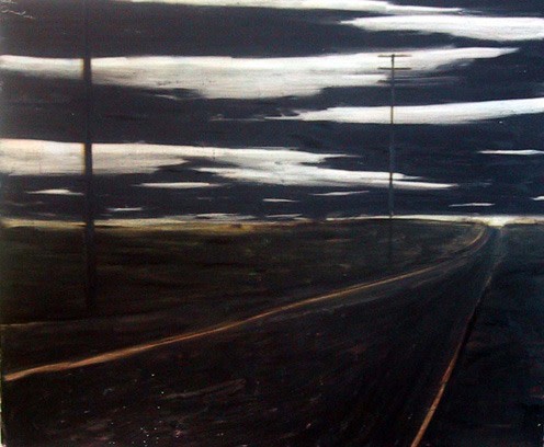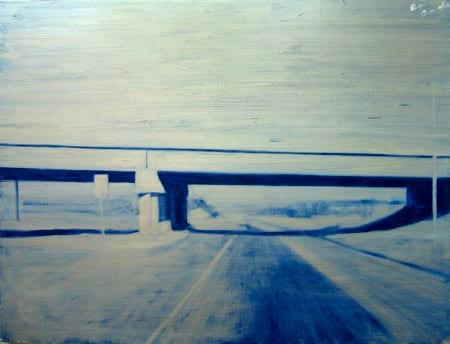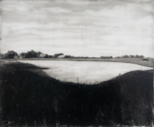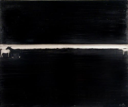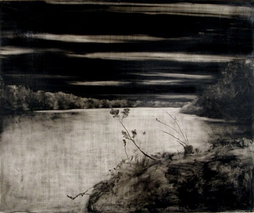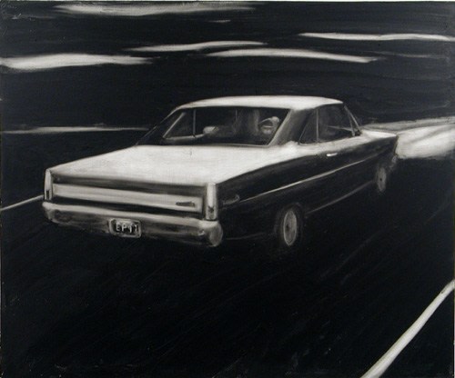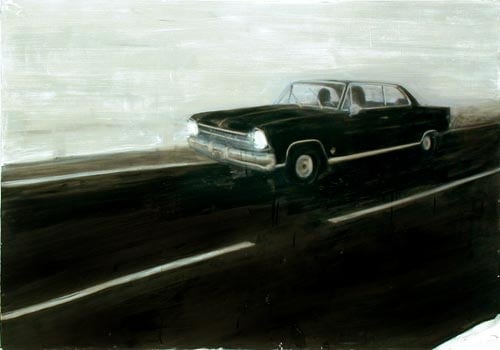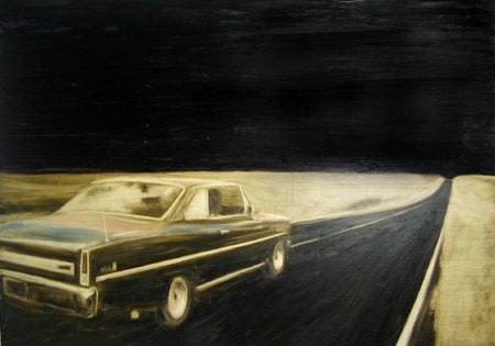 Dark expansive landscapes, grazing animals, generic cars on the highway, profiles of the Empire State Building and portraits of friends are all part of Andoe's world. Andoe's iconic imagery and monochromatic palette show a directness and restraint that make for an essentialist work with formal resolve, and where pictorial illusion is more Symbolist allusion. Idea, image and an almost performative process of painting become one in pictures that capture recollection and memory, yet possess a certain timelessness.
