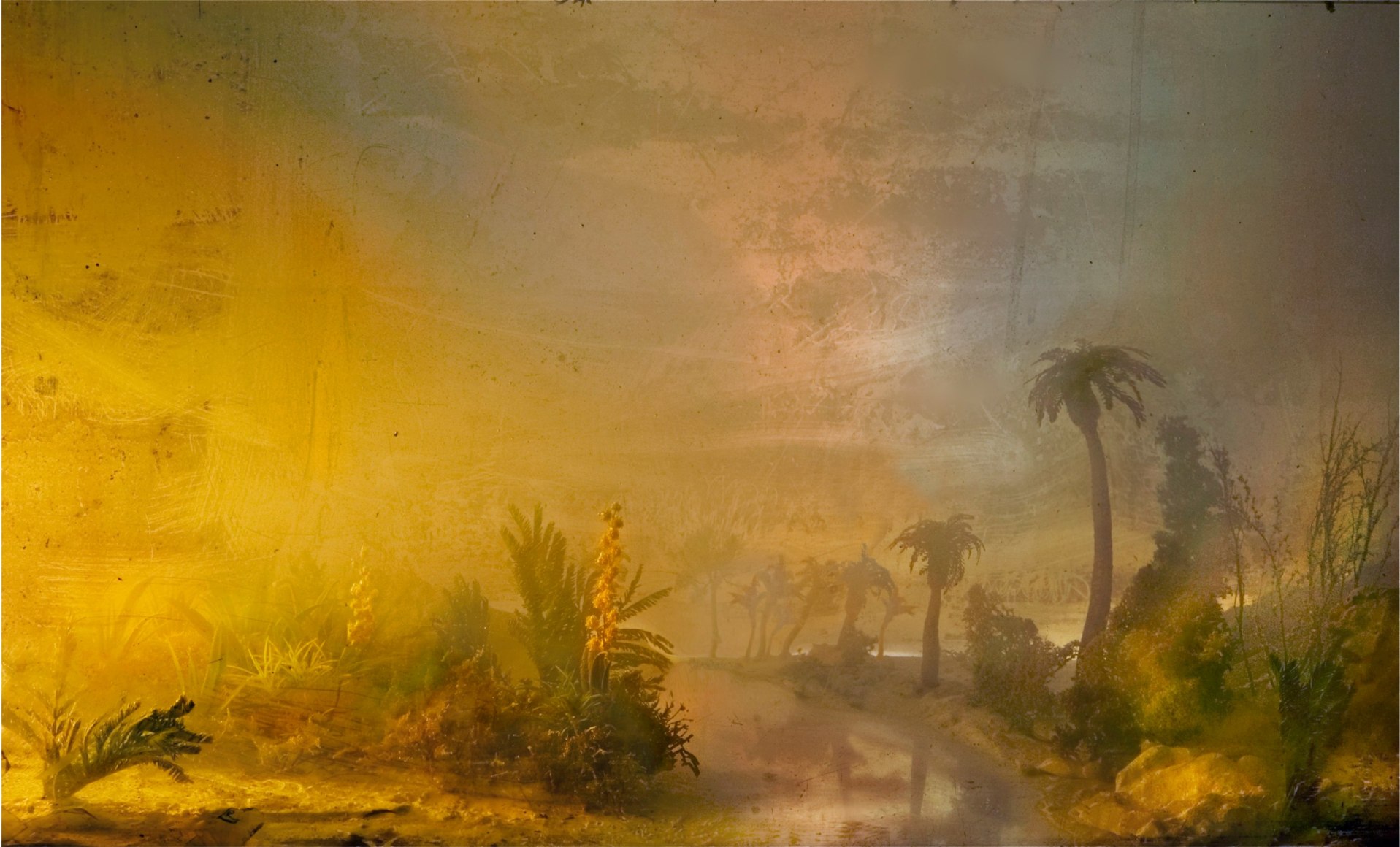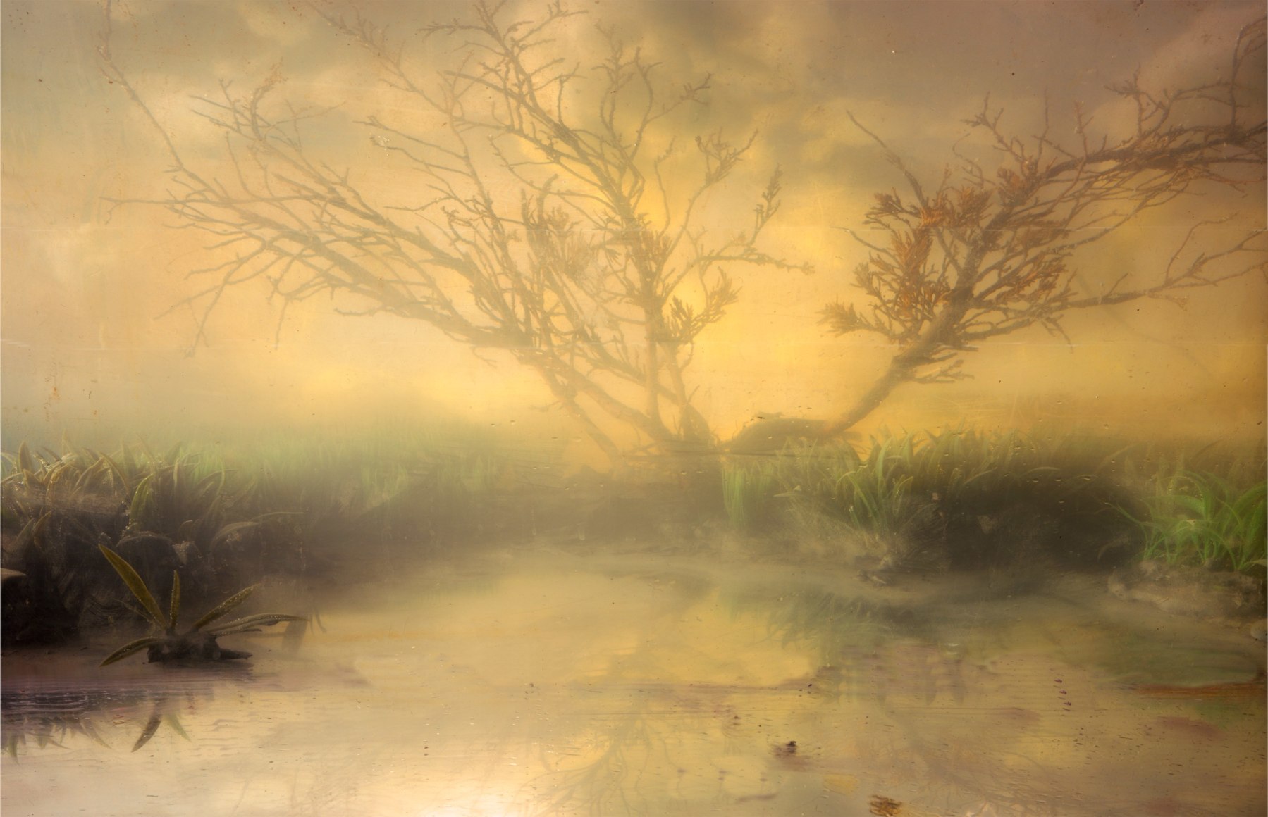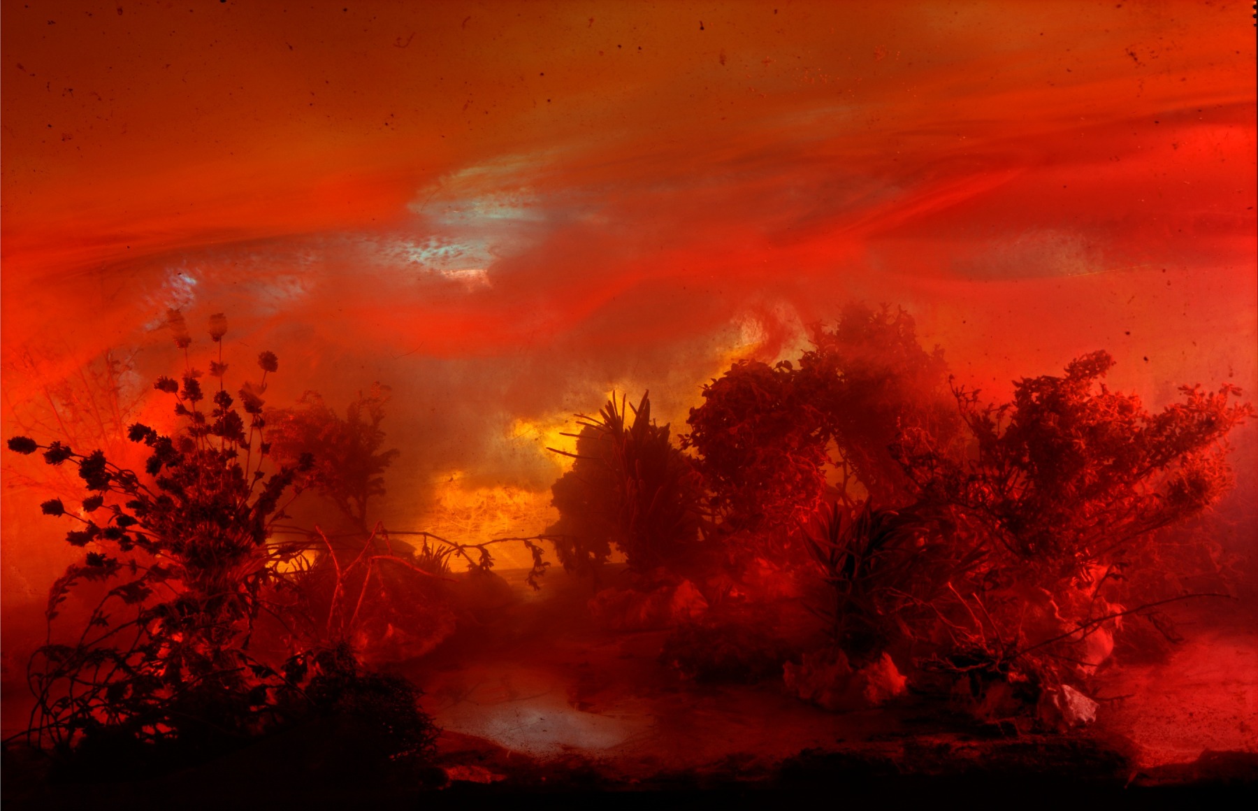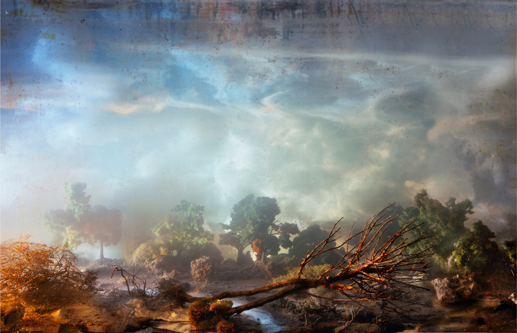 Kim Keever's large-scale photographs of painterly landscapes invoke a sense of the sublime reminiscent of the Hudson River School and 19th Century Romanticism. In actuality, Keever creates his timeless worlds by carefully constructing small-scale topographies in a 100 gallon glass tank, which he then fills with water, disperses liquid pigments and lights with colored gels to achieve the ephemeral atmospheric conditions that enliven his work. They are fully fabricated illusions that conjure the realms of our imagination. These conceptually contrived works address the psychology of the picturesque and our perception of the unaltered landscape and the natural world.