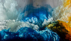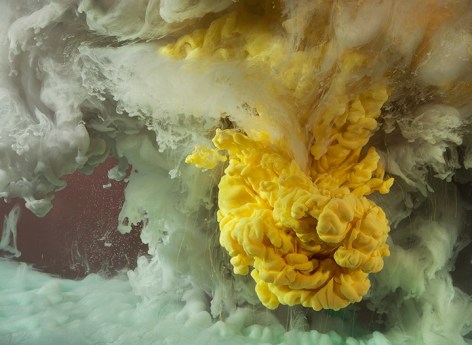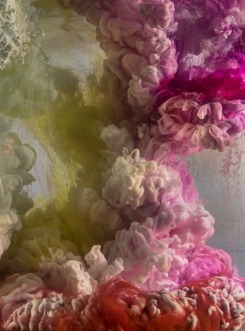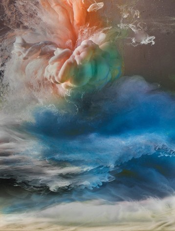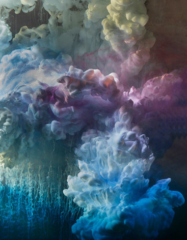 Kim Keever is well-known for creating strange and atmospheric photographic images by pouring paint into a 200-gallon tank of water and photographing the colors as they disperse and come back together, creating spontaneous images that evoke earthly clouds while also remaining abstract and alien. The works are mysterious and ephemeral, creating a nuanced and dreamlike space that bridges the real and surreal. The process produces billowing blossoms and explosive clouds of colors that he must quickly capture with his large-format camera.