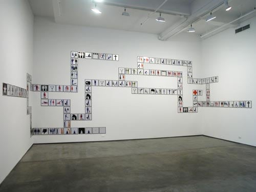 Lars Arrhenius is an artist based in Stockholm whose serial, graphic installations and animations merge a diagrammatic narrative with a social narrative. This exhibition, his first in the United States, will include several large works where small cibachrome prints mounted on panels are placed in puzzle or map-like configurations, as well as a new digital animation.