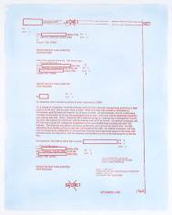 JENNY HOLZER negotiates the political landscape after 9/11 and traces the debate over covert operations, ghost detainees, prisoner abuse, and war tragedies in Iraq, Afghanistan, and Guantanamo Bay through the directives, emails, and testimonies of policy makers, soldiers, and prisoners. Her portraits of Guantanamo Bay detainees, rendered through enlarged silk-screen paintings of declassified documents, detail prisoner abuse. Abu Ghraib, Guantanamo Bay, Waterboarding, Geneva Conventions--the subject of torture leads quickly to an examination of morality, civic responsibility, and issues of representation. Her paintings lend tactility to documents often unseen and offer visibility to hidden pasts and a masked present.