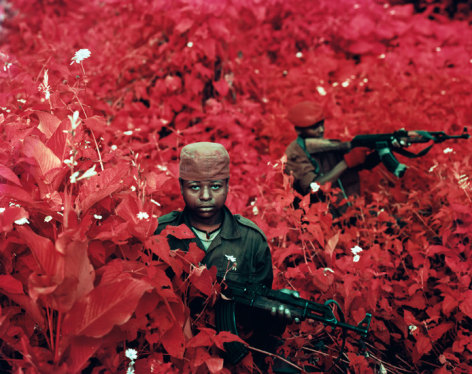 Throughout 2012, RICHARD MOSSE and his collaborators travelled in the eastern Democratic Republic of Congo, infiltrating armed rebel groups in a war zone plagued by frequent ambushes, massacres and systematic sexual violence. His most recent Infra series captures the ongoing war between rebel factions and the Congolese national army in the Democratic Republic of Congo. The Infra series is marked by Mosse's use of Kodak Aerochrome resulting in the lush Congolese rainforest rendered into a beautifully surreal landscape of pinks and reds. Mosse said in an interview with The British Journal of Photography ,"I wanted to export this technology to a harder situation, to up-end the generic conventions of calcified mass-media narratives and challenge the way we're allowed to represent this forgotten conflict… I wanted to confront this military reconnaissance technology, to use it reflexively in order to question the ways in which war photography is constructed."