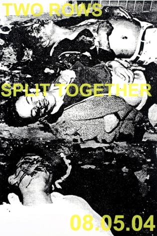 ADAM PENDLETON is a conceptual artist known for his multi-disciplinary practice, which moves fluidly between painting, publishing, photographic collage, video and performance. His work centers on an engagement with language, in both the figurative and literal senses, and the re-contextualization of history through appropriated imagery to establish alternative interpretations of the present and, as the artist has explained, "a future dynamic where new historical narratives and meanings can exist." Pendleton's LAB Painting (Two Rows Split Together white) juxtaposes image and text in order to reference the protests of 1968, and in particular the Tlatelolco massacre in Mexico (also known as The Night of Tlatelolco from a book title by the Mexican writer Elena Poniatowska). In refusing the fugibility of images, characteristic of other modes of contemporary appropriation, Pendleton imbues his source images and texts with new valences, less concerned with the past than with insisting on its continuity with the present.