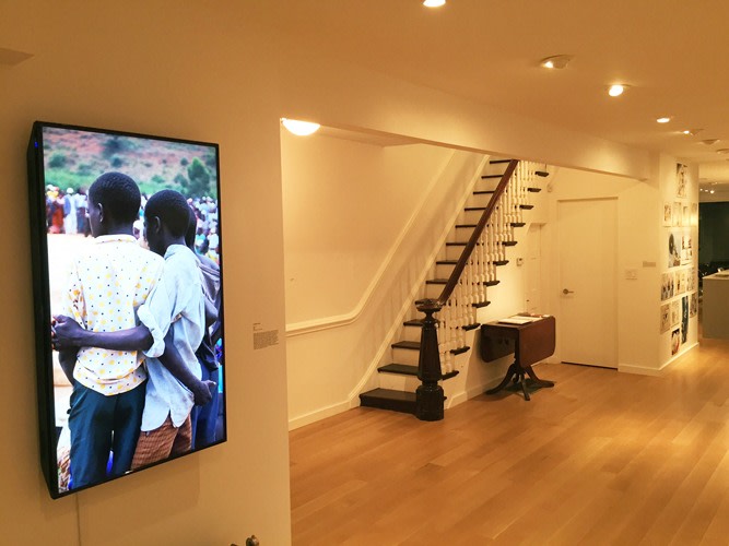 ALFREDO JAAR's Rwanda Project: 1994-2000 is a series of twenty-one photography-based installation works including "The Eyes of Gutete Emirita," "Real Pictures" and "Embrace" derived from his experiences in Rwanda. He first travelled there in the summer of 1994 while the genocide was still ongoing and overwhelmingly ignored by the international community. The Rwanda Project attempts to counter and transform the conventions of photojournalism, which frequently objectifies violence through unmediated images of victimization. Alternatively, Jaar reverses the lens' eye to focus on the eyes of the witnesses and the hauntingly beautiful landscape in which this massacre was enacted as a means of eliciting an emotional response from the viewer in which every individual feels responsible for the community and for 'the other.'