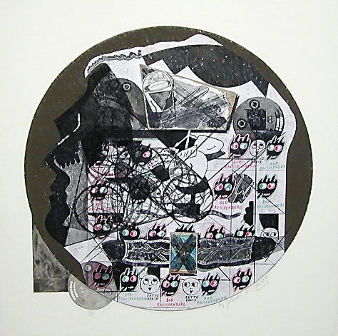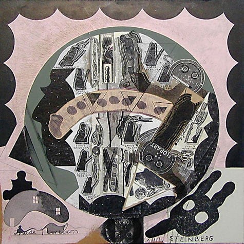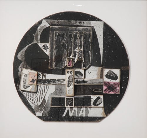 collage on round cardboard panel