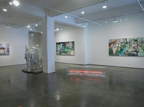 BEHOLD the truth in art. Repent your aesthetic transgressions. Stave your misguided visual temptations. The artwork in Relentless Proselytizers dares to make you a believer. The twelve artists gathered here would like to make you a disciple of their worldviews. Their tactics are zealous and at times over the top. They realize that the divide between faith and belief is a sharp and necessarily thin one; not content with an agnostic pose, a tendency toward baroque overcompensation persists. From Jay Batlle's row of credit cards skewered with a neon rod, which draws, overdraws, or overdrafts you into his world of debt-dependency, to Matthew Day Jackson's Viking burial ship--a sleek nautical metaphor for the interment of one's youthful obsessions, no curious onlookers will be left behind.