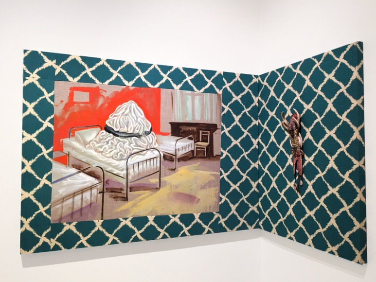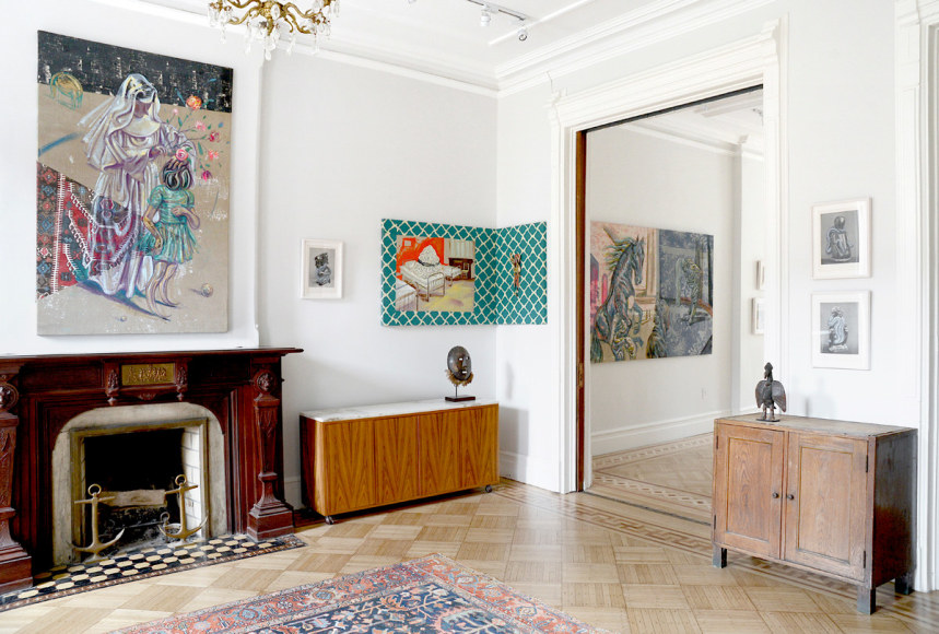 More than referring to Freud’s essay, the exhibition ‘Totem & Taboo’ is a reflection on the visible and the invisible. There is no one particular key to look for or find, the viewer is free to walk through the rooms of this historical brownstone; though perhaps the most engaged visitor will find a key – the very key Alice found and used on various occasions. Be prepared: the same action rarely produces the same effect. In Daniel Horowitz’s world and logic, the Cheshire Cat and Schrödinger’s are close friends. Before taking off the veil, you never know what is hidden. Totems are stable things, unchangeable, whereas taboos change all the time: something usually forbidden unless it’s not.