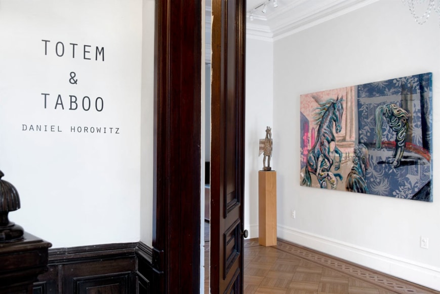 Tillou Fine Art presents Totem & Taboo, an exhibition of new works by Daniel Horowitz. The exhibition features works on paper and paintings on raw linen stitched with textiles, juxtaposed with ethnographic artifacts from various private collections. Totem & Taboo will be accompanied by a series of salon-style interdisciplinary conversations and happenings with experts from a variety of fields, including art, anthropology, music and psychology.