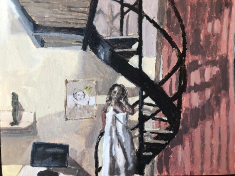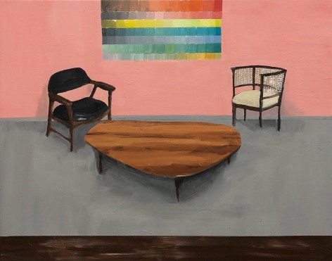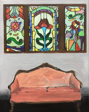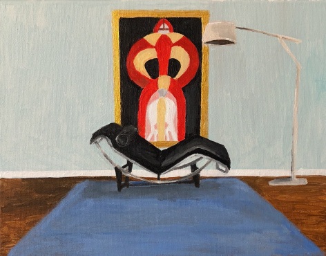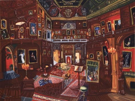 Gretchen Scherer’s paintings of gilded mansions, hallways and staircases expand and contract like a dream. Drawing directly from vintage antique and home décor magazines, Scherer creates her own interiors- part fantasy and part reality. For Ann Toebbe, home spaces and their decorative layouts are clues to a larger story. Her spaces are viewed from above like an architect’s blueprint, yet through nuance and decoration each painting reveals stories about their inhabitants. Similarly, artist Polly Shindler crafts paintings of overstuffed sofas, favorite chairs and bedroom nooks. Her work speaks to the necessity and pleasure of crafting our home spaces as well as the personality these objects bring to the way we live. Working in ceramics, Katie Stout’s practice is shaped by an urge to subvert commonplace household objects such as lamps, rugs and mirrors. Her voluptuous figurative ceramic lamps combine dark irony with playful celebration.