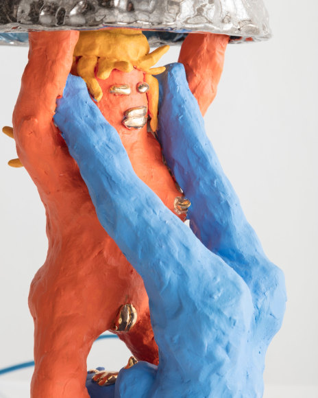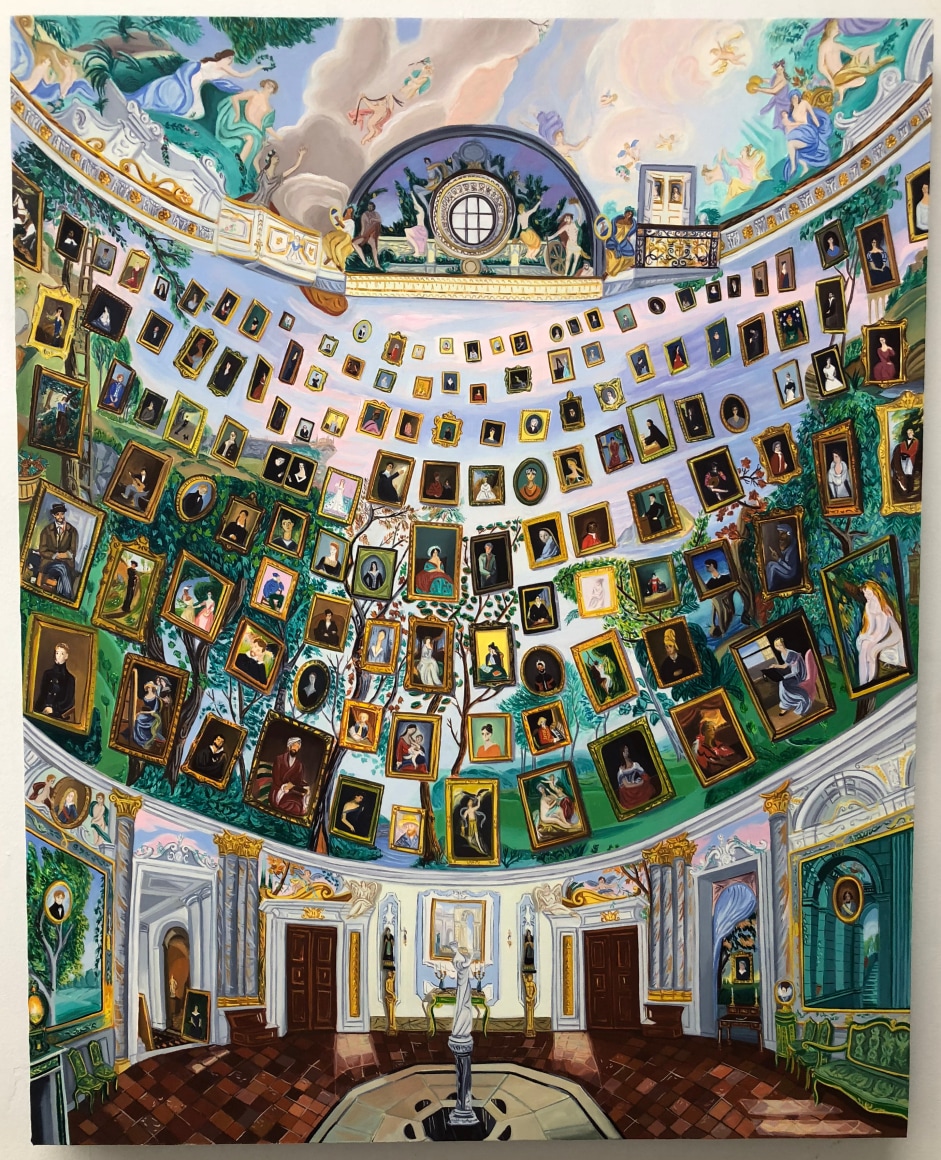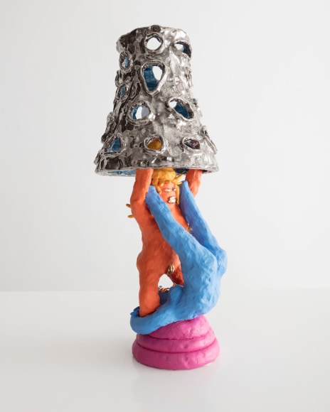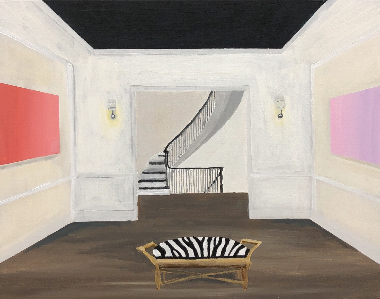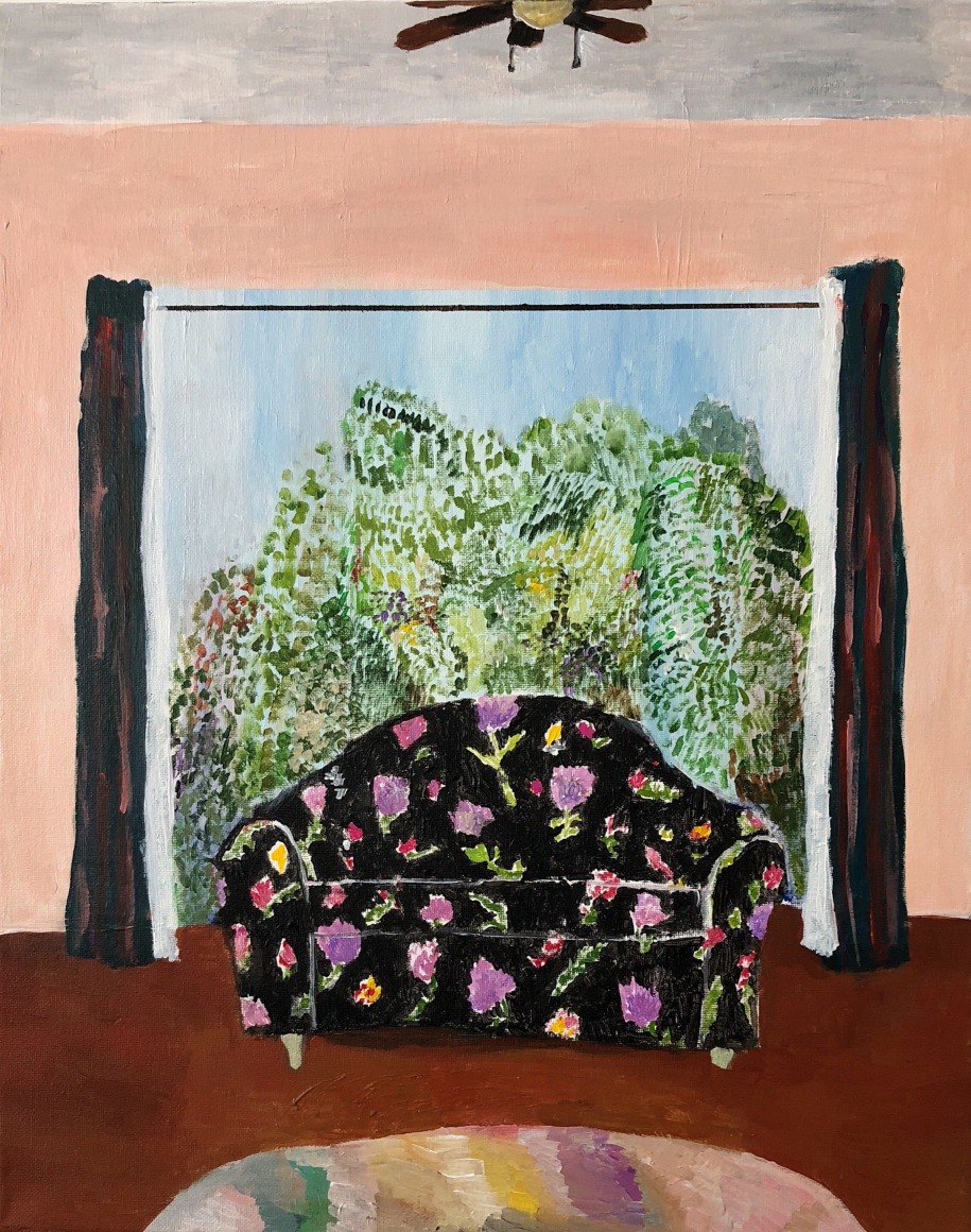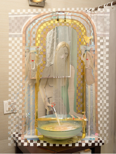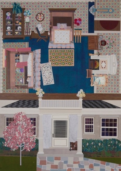 Gretchen Scherer’s paintings of gilded mansions, hallways and staircases expand and contract like a dream. Drawing directly from vintage antique and home décor magazines, Scherer creates her own interiors- part fantasy and part reality. For Ann Toebbe, home spaces and their decorative layouts are clues to a larger story. Her spaces are viewed from above like an architect’s blueprint, yet through nuance and decoration each painting reveals stories about their inhabitants. Similarly, artist Polly Shindler crafts paintings of overstuffed sofas, favorite chairs and bedroom nooks. Her work speaks to the necessity and pleasure of crafting our home spaces as well as the personality these objects bring to the way we live. Working in ceramics, Katie Stout’s practice is shaped by an urge to subvert commonplace household objects such as lamps, rugs and mirrors. Her voluptuous figurative ceramic lamps combine dark irony with playful celebration.