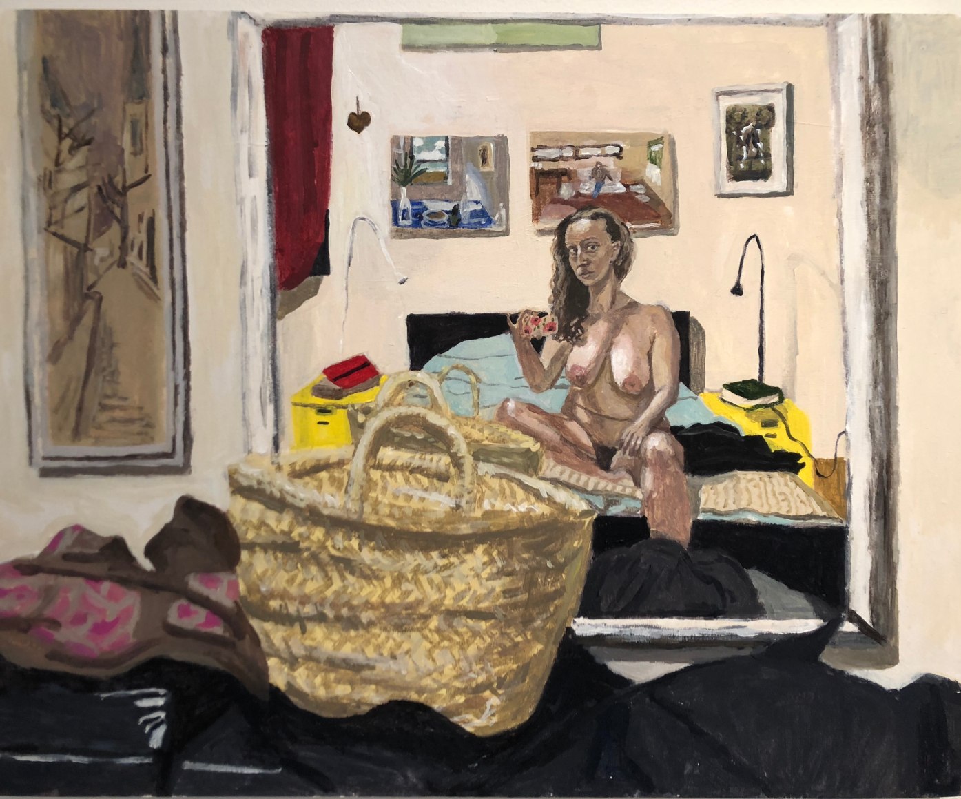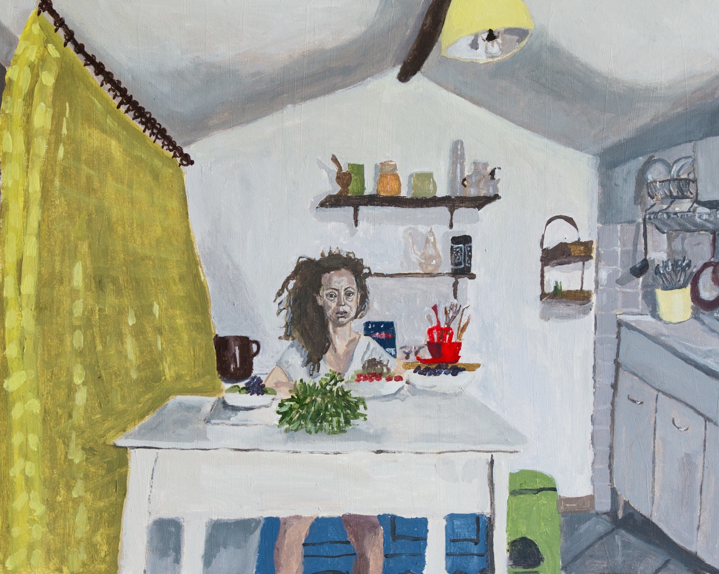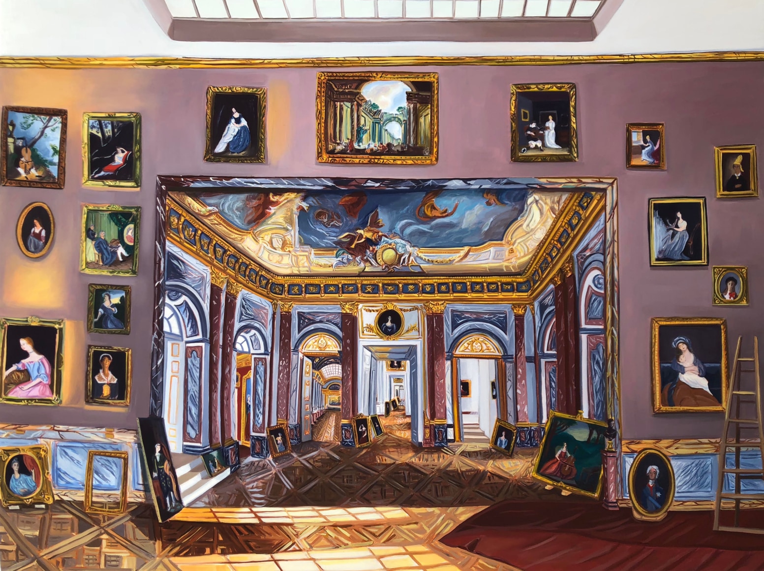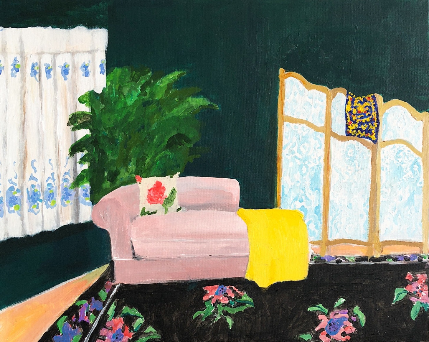 Gretchen Scherer’s paintings of gilded mansions, hallways and staircases expand and contract like a dream. Drawing directly from vintage antique and home décor magazines, Scherer creates her own interiors- part fantasy and part reality. For Ann Toebbe, home spaces and their decorative layouts are clues to a larger story. Her spaces are viewed from above like an architect’s blueprint, yet through nuance and decoration each painting reveals stories about their inhabitants. Similarly, artist Polly Shindler crafts paintings of overstuffed sofas, favorite chairs and bedroom nooks. Her work speaks to the necessity and pleasure of crafting our home spaces as well as the personality these objects bring to the way we live. Working in ceramics, Katie Stout’s practice is shaped by an urge to subvert commonplace household objects such as lamps, rugs and mirrors. Her voluptuous figurative ceramic lamps combine dark irony with playful celebration.
