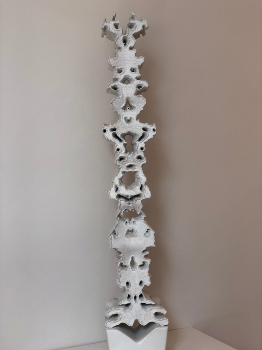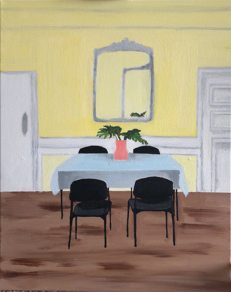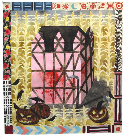 Rachel Granofsky’s photographs satirize the staged home imagery found in online real estate websites in NYC. Working without any post-production editing techniques, her work serves as a reminder on the deception present in real estate photography, Instagram-able home imagery and human perception in general. Keri Oldham’s watercolor paintings depict haunted houses that cross between cabins and crime scenes. Her work explores the psychic residue of spaces and the trauma a home can hold, even after its inhabitants have moved on. Utilizing the iconic Rorschach Test, Colette Robbins creates domestic sculptures that invite personal projections. Her inkblot inspired sculptures act as portals to our inner worlds and are portraits of our mental interior ‘home’.