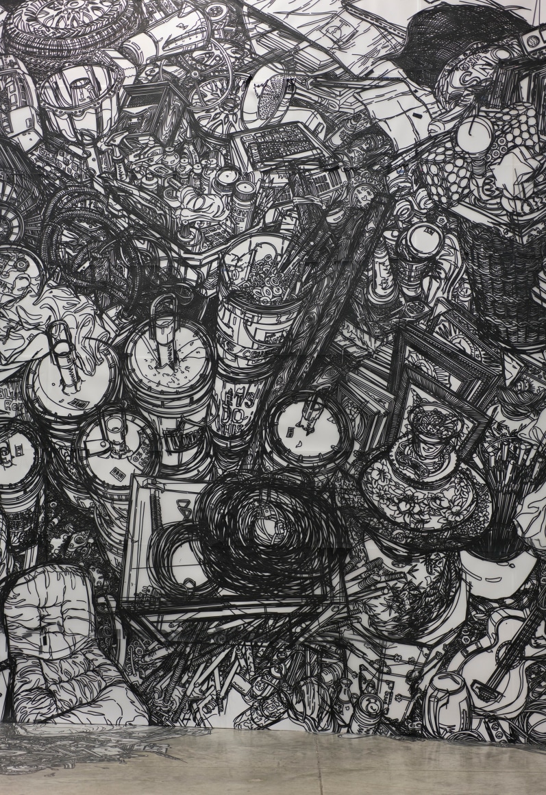 Polina Barskaya’s intimate self-portraits capture the quiet and raw banality of being at home. From the bedroom, to the kitchen, or bathroom, her work expresses the everyday and the spaces we inhabit in the most basic and physical ways. Also drawing on the everyday, installation artist Heeseop Yoon creates work about forgotten spaces and the clutter we collect. Photographing basements, garages and over-piled closets, Yoon draws chaotic collections of objects then unleashes them in large scale installations.