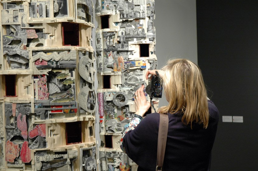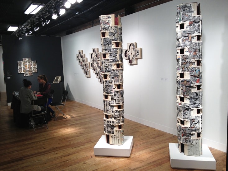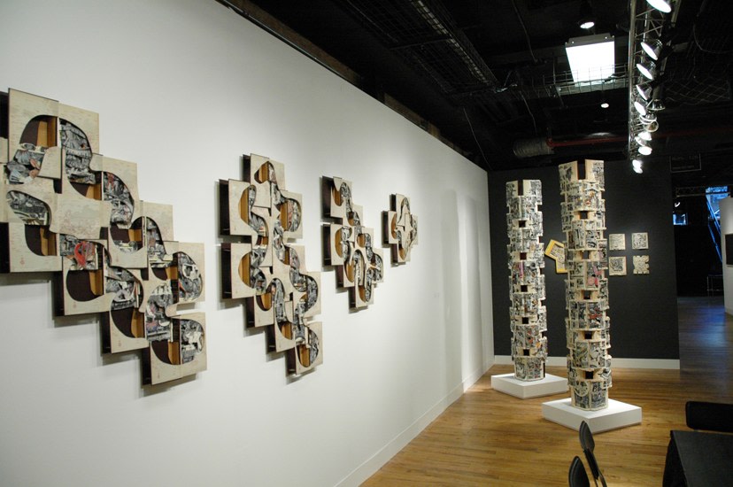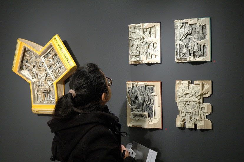 BRIAN DETTMER is known for his artwork that involves the alteration of information media. A large body of his current work is created by altering vintage books and assembling sets of books into intricate and innovative sculptures. After carefully selecting the source and subject for his investigations, Dettmer determines the architecture of construction and aesthetics of presentation for his altered book artworks. Then, with the perspective of an archeologist, vision of an explorer and precision of a surgeon, using scalpels and X-acto blades, he selectively only removes, exposes and seals existing images and information to propose new conceptual contexts and map new visual journeys.