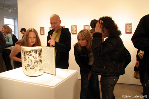 BRIAN DETTMER sifts through stacks of old books to uncover the perfect source and subject for his sculptural examinations. Dettmer treats his book sculptures like archaeological sites by excavating forms and uncovering hidden meanings. He alters pre-existing materials by selectively removing and manipulating elements as a way to allow new interpretations and ideas to emerge.
