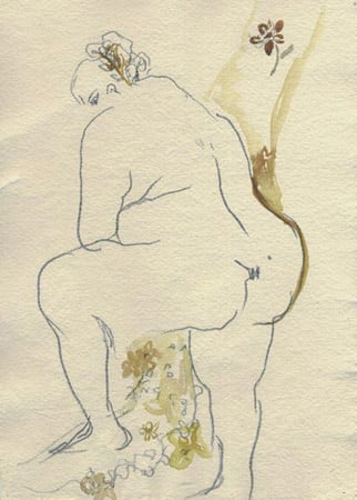 Karen Finley Quartet, 1999 pencil and watercolor on paper approx. 12 x 8 1/2 inches each,1 of 4