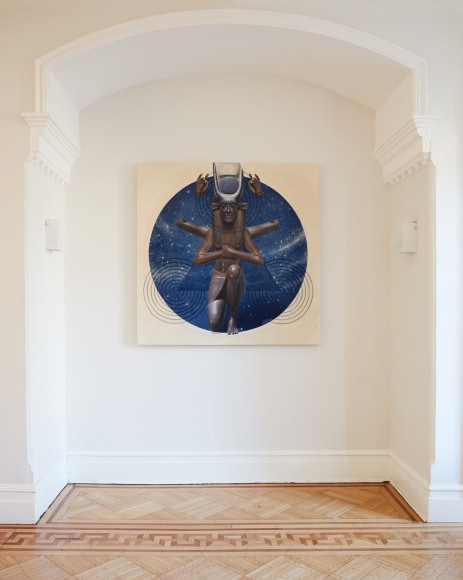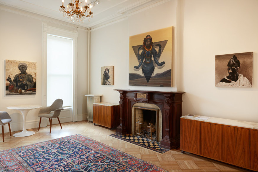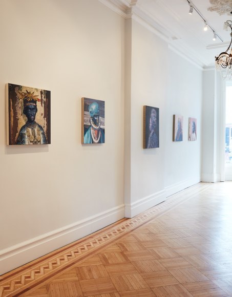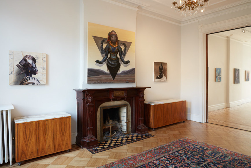 Opening April 22, Tillou Fine Art will present Obscure Origins, the first comprehensive solo presentation in New York City of paintings and studies by Brooklyn-based artist KAJAHL. Curated by Larry Ossei-Mensah, this exhibition presents a focused survey of KAJAHL’s portraits, which combine iconography from African, Asian, European, and Pre-Columbian traditions. The fusion of these symbols results in the creation of enigmatic artworks that foreground the forgotten past and reanimate minor artifacts of history into transformative assemblages.