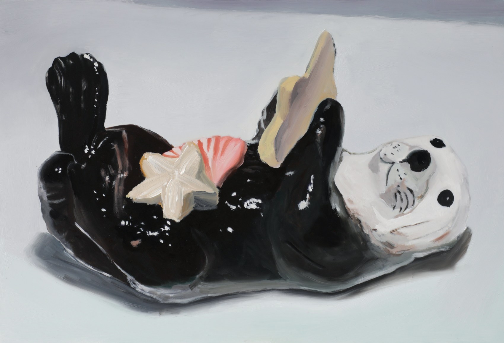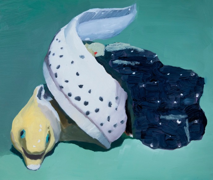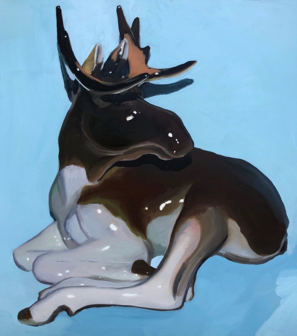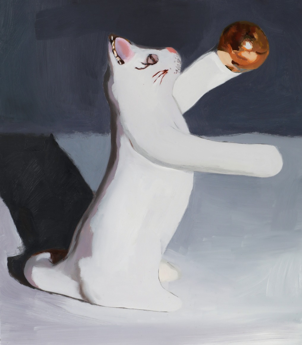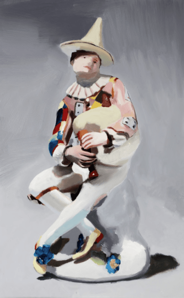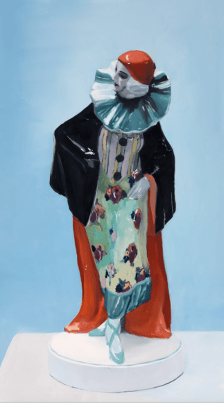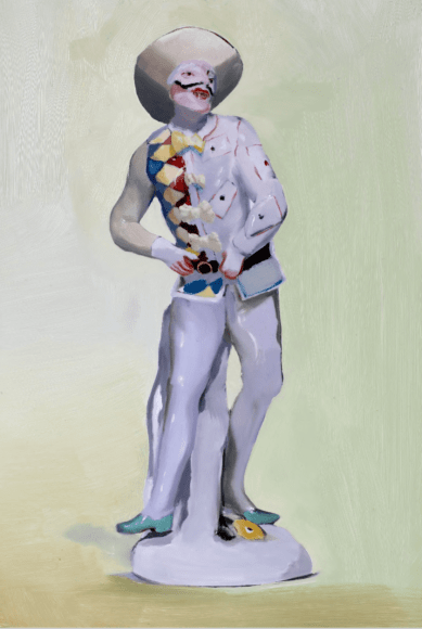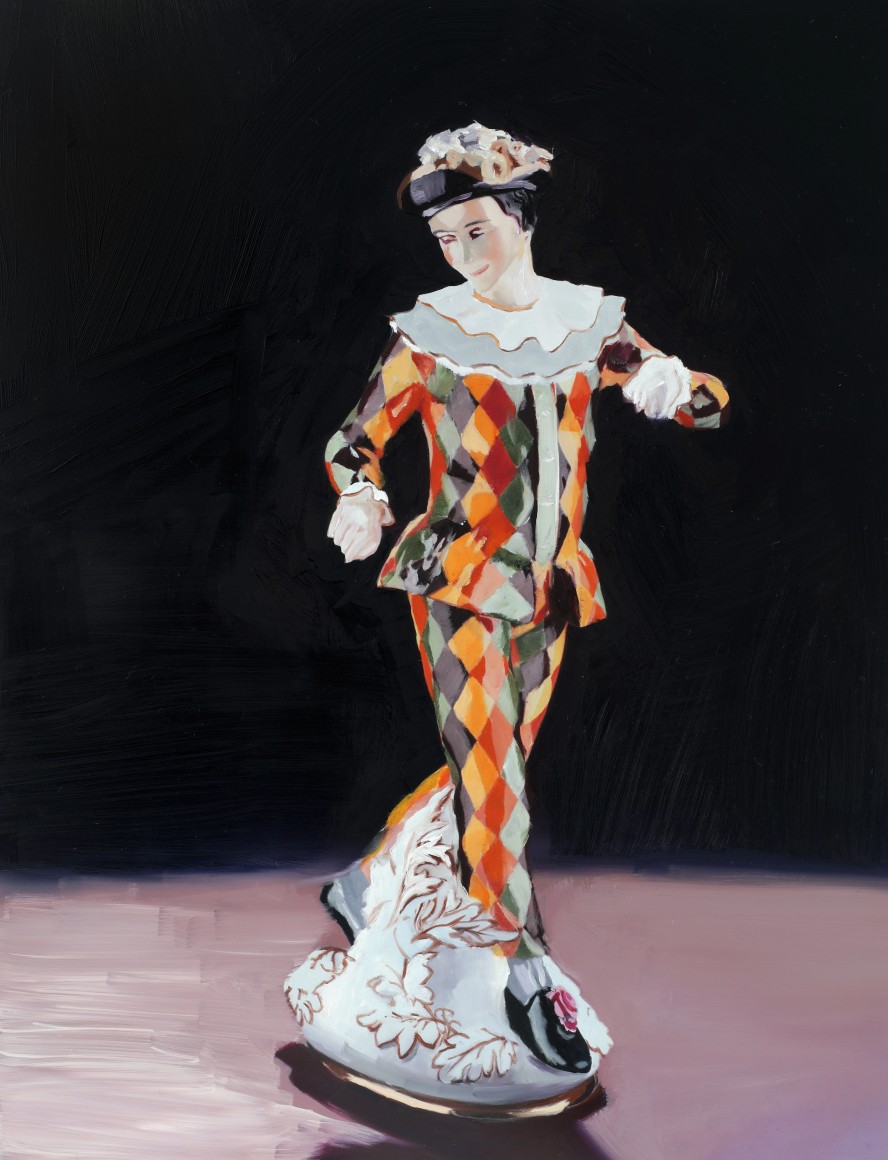 In Clay Orchestra, historically mass-produced ceramic objects are honored through expressive portraits. Sensuous oil paintings on aluminum panels float through the exhibition, grouped by type: harlequins, jars, honey bear containers and ambiguous figures.  The juxtaposition of these works also forms a still-life of sorts -- the individual paintings, in aggregate, form an archetype of yard sales, fireplace mantles, and manufactured nostalgia on display in homes around the world. This grouping unearths a commonality between different countries despite political histories and cultural differences, revealing a deep truth: tiny idols always seem to make their way into other homes and either clutter spaces or fade into obscurity.
